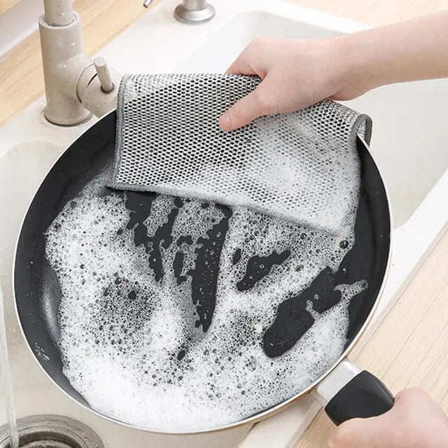 4pcs Magic Dishcloth Silver Wire Cleaning Kitchen Cloth Thickened Microfiber Wash Towel Built-in Sponge Steel Wire Ball Rag