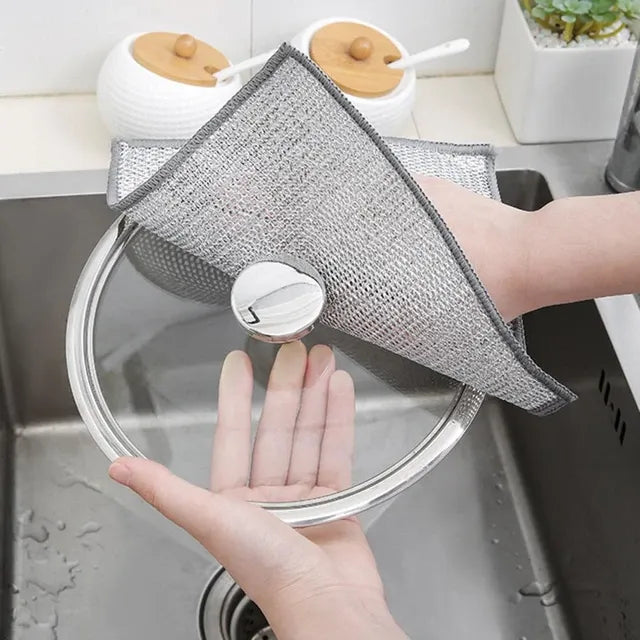 • Versatile Usage: This versatile cleaning cloth is perfect for kitchen use, providing a thorough clean with its built-in sponge and steel wire ball rag.